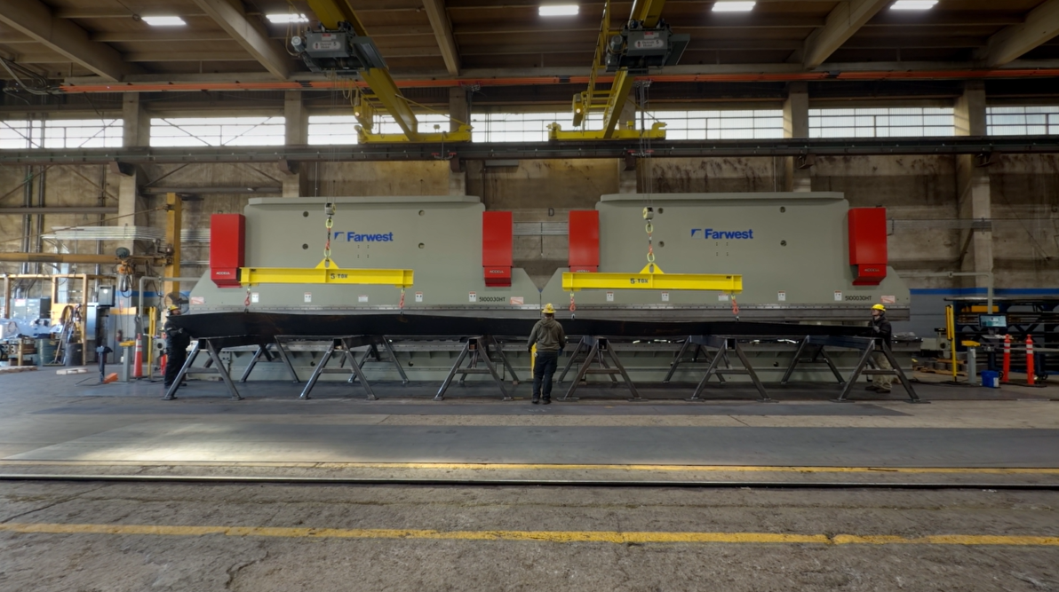 Farwest Steel is proud to feature one of the largest press brakes in the western United States. Our brand-new machine delivers 2000 tons of total forming capacity across 60 linear feet, supporting large-scale, high-precision bending projects. Using our press brake, operators help produce components for: